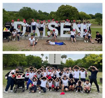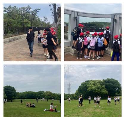 5・6年生の遠足は大仙公園へ行きました。展望台から目的地を確認し、仁徳天皇陵を見学しながら大仙公園を目指します!