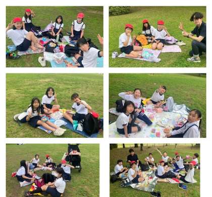 ウォークラリーの後は待ちに待ったお弁当!そして広ーい芝生広場でサッカーや鬼ごっこをして遊びました。