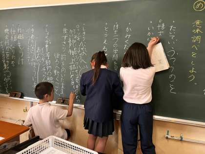 授業の最後にはみんなで意味の確認。みんなでちゃーんと「あとずさり」、できました!