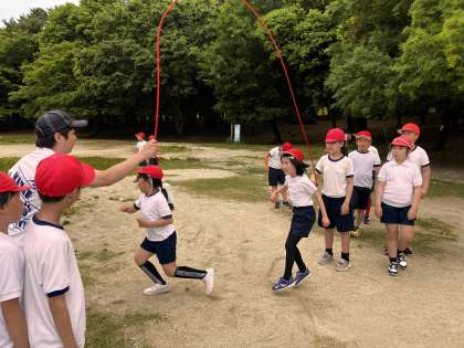 服部緑地公園では花壇で花や虫、植物の観察をしたり、みんなで楽しく遊具で遊んだりしました。そしてたくさん歩いて思いっきり遊んだ後は、楽しみにしていたお弁当。みんな嬉しそうに食べてました。