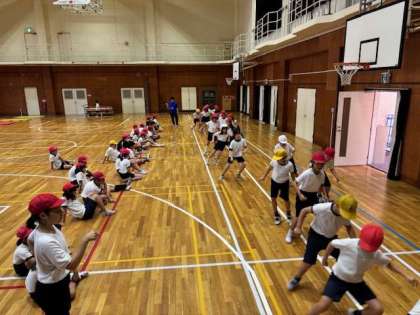今日はなんと、5年生と一緒に体育で反復横跳びを行いました!