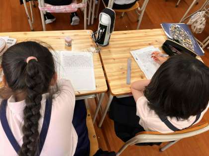 「これどういう事ー?」「ここ見たらいいよー!」などみんなで協力しながら取り組んでます。