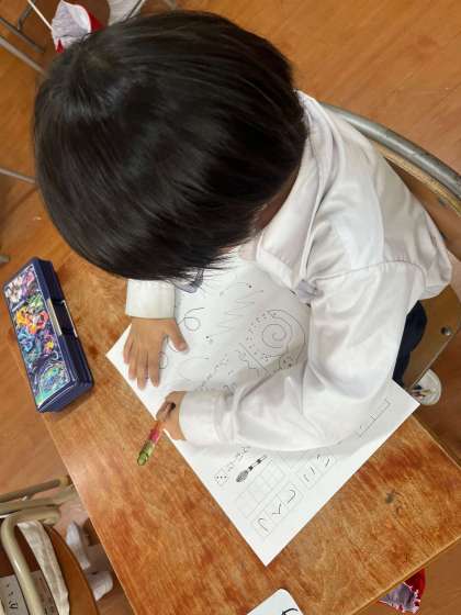 まだまだひらがなを読むのが難しいので、先生といっしょにしました。よくお話を聞いてできていましたよ。