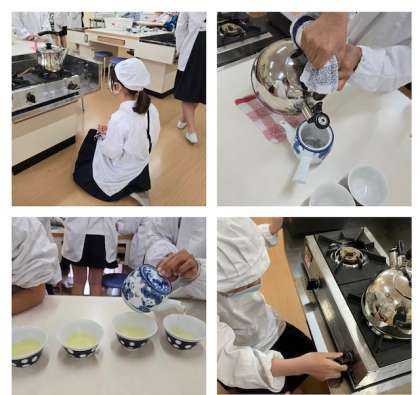 5年生から始まる家庭科の学習で、初めての調理実習を行いました。今日のメニューは急須で緑茶を入れます。