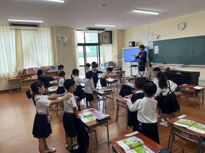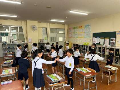 楽しい歌声が教室にあふれていました。みんなで歌いながらじゃんけんをしました。