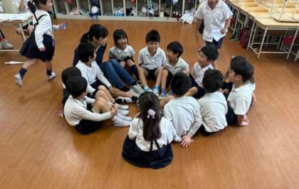 休み時間は教室でハンカチ落としをしました。