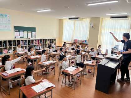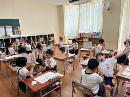 今日はわらべうた(こどものうた)を習いました。「おちゃらか」という遊び歌をしました。