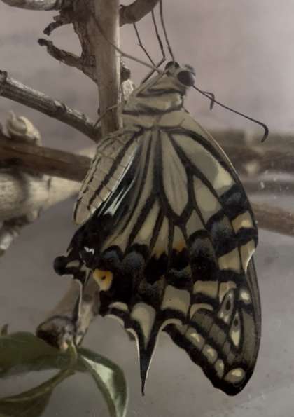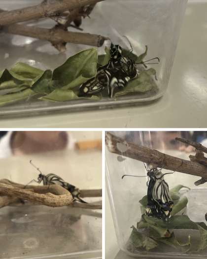 な、なんと!アゲハ蝶のももちゃんが羽化する瞬間を見ることができました。