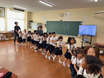 はじめはうまくいかなかったリズム打ちでしたが、何度かするうちにみんなでそろえることができました!