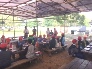 各部屋に入って荷物を置いて、はじめに避難訓練。