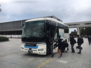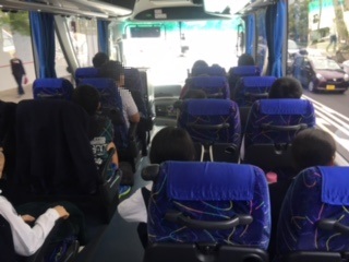 平和資料館での見学の後は、バスに乗り込み大久野島へ向けて出発です。