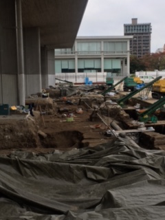 ちょうど、改修工事をしている東館の地面を掘って、調査をしているところも見学できました。