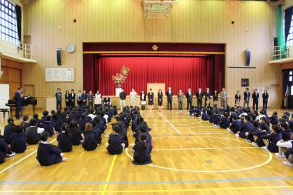 対面式では、ドキドキしながら入場する1年生をたくさんの笑顔と大きな拍手で迎えることができました。1年生の「よろしくおねがいします。」の声にみんなニッコリするなど、笑顔いっぱいの対面式を迎えることができました。