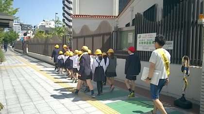 本校では、遠足を控えたこ時期に交通安全学習を行っています。