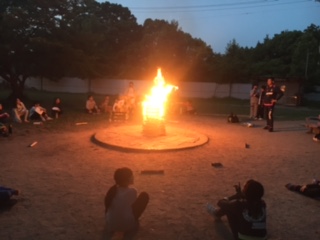 山の神・・・ではなく、火の神が友情の火を運んできてくれたようです。