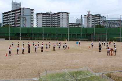 写真は、(上)応援団 (下)決勝・得点 の様子です。