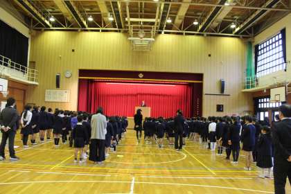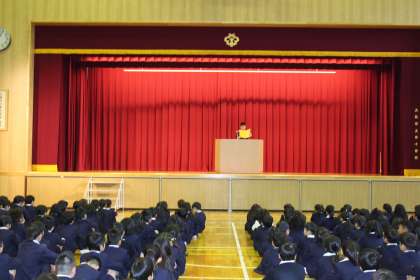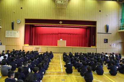 2学期に頑張ったことを作文で発表したり、冬休みの安全な過ごし方について先生からお話を聞いたりしました。