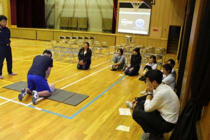 教職員と希望した保護者の方も一緒に研修を受けました。
