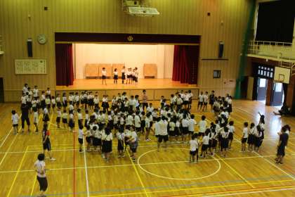 ペアでじゃんけんをして、負けたお友だちが、勝ったお友だちの後ろに行って列車をつくります。