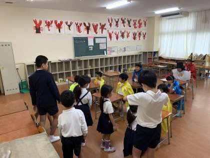 たてわり班のリーダーさんが、「つぎはこのお店に行くよ。」「みんなそろってる?」など、まわりに声をかけている様子が印象的でした。