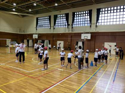 ドッジもバレーも試合形式の練習を中心に行う中で、ルールの確認をしました。