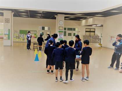 まずは、アイマスクを着用する人、介助する人に分かれて