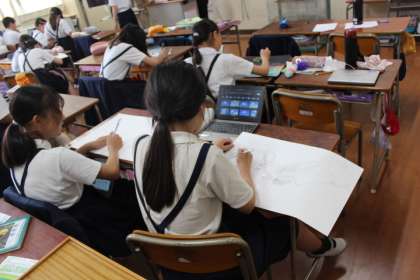 5年生 図工でポスターを制作しています。ひと筆ひと筆、丁寧に☆