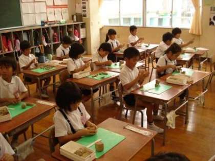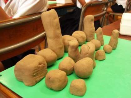 算数では、形の勉強をしています。「箱の形」「つつの形」「ボールの形」を勉強しました。今日は、算数で習ったことをいかして、粘土でそれぞれの形を作りました。上手に作ろうと一生懸命でした。