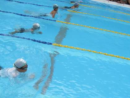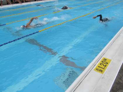 中学校校区の3校が集まり、1・2学期に学んだ水泳の成果を発揮したり、友だちを懸命に応援したりしながら、楽しいひとときをすごすことができした。