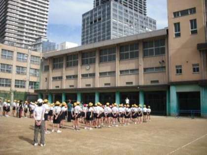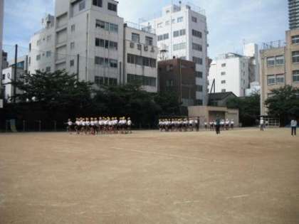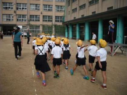 スポーツ大会の開会式で必ずと言っていいほど行われる入場行進。これも小学校の運動会では演技の一つといえます。本校では毎週月曜日の朝会で行進の練習もしています。日ごろから行っているので、1年生も立派な行進ができるようになってきています。