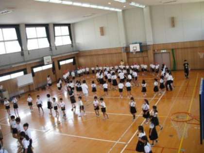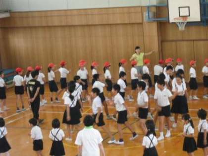 そのあと、みんなで輪になって河内音頭の練習をしました。手本になる輪の中心は6年生。さすがです。腕を大きく振りながらリズムにのって踊っている人がたくさんいました。