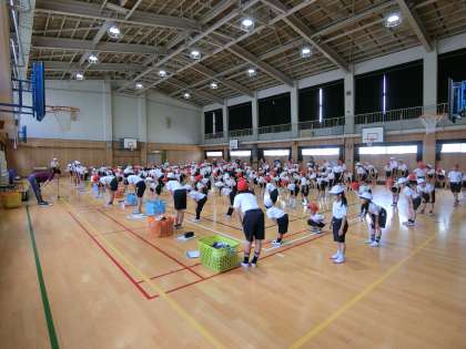 ・昨夜来の雨で運動場の状態が良くないので、ソフトボール投げと50m走の計測は、できなかったので、後日、各学年の体育の時間に計測します。
