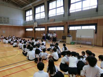 ・集会委員会が持った物やポーズについて一度見て、そのあと全員が後ろを見た後、何が違っているかを当てるクイズ。