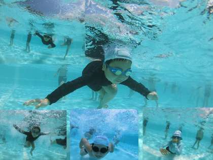 ・2回目のプール水泳、先週の1回目よりも水に慣れてきました。