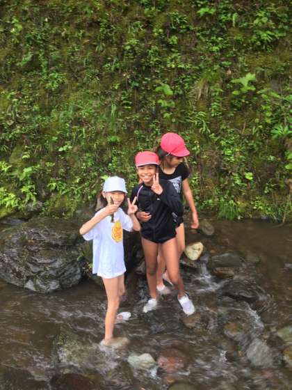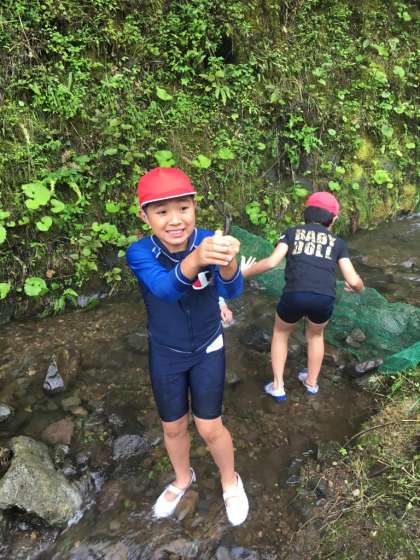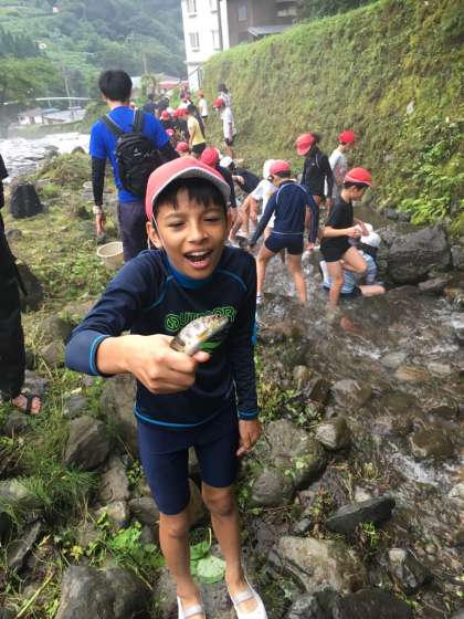 魚は「あまご」。なかなかすばしこく岩の下に隠れるのを掴みます。