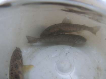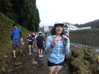 魚つかみ、開始から40分。あと、5尾いるので、頑張っています。カニを見つけた子も。