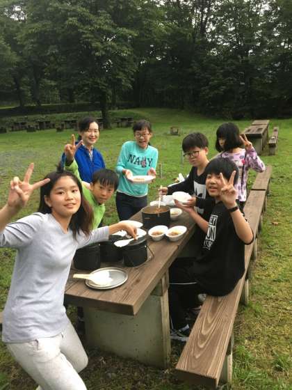 「いつもより雲の動きが速いよ」、ひぐらしの声の中、食事できる喜びを味わいました。