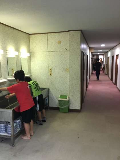 起床。天気は曇り。洗面。宿舎のご主人が子ども達の水筒にお茶を入れてくださっていました。