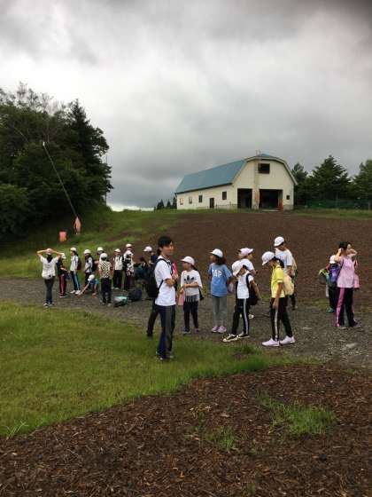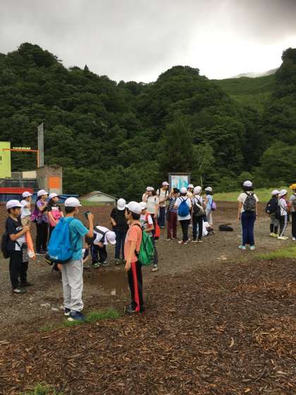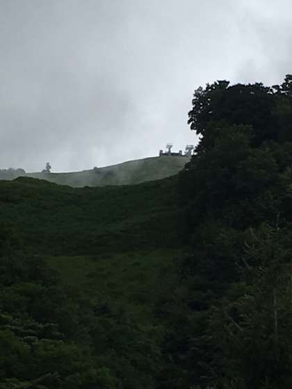 トイレ休憩。目指す頂上はうっすら雲がかかっています。