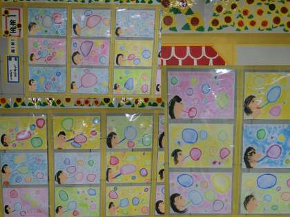 昨年に続いて、メトロ難波駅構内(四つ橋線北改札口 駅長室前通路壁面)に本校全児童の図画作品を掲示していただいています。