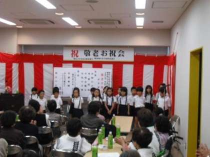 敬老会にお招きいただき、秋の歌を3曲披露しました。なじみの曲♫村まつり♬の合唱は皆さんにとても喜んでいただきました。中には一緒に歌っている方もおられ、子どもたちもたいへん満足していたようです。