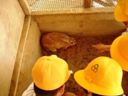 1年生の生活科で、ウサギとふれあう活動をしています。学校で飼育しているウサギの「たんぽぽ」となかよくなろうと、1年生はがんばっています。ウサギをだっこできるお友だちも増えてきました。