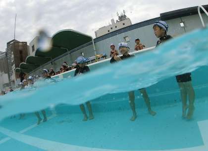 今日は、1年生2年生にとって、本年度最後のプール水泳。