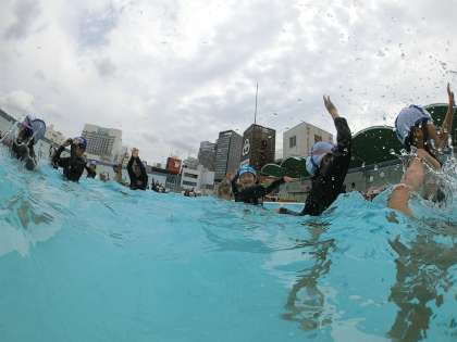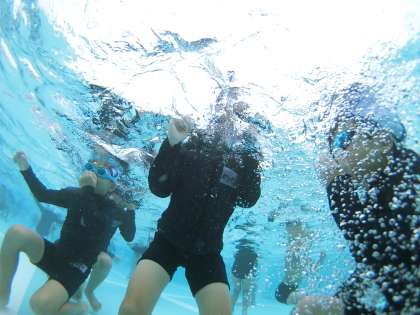 ・どんどん成長している1年2年。「ありがとうございました」の声で、本年度最後のプール水泳を終えました。