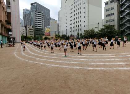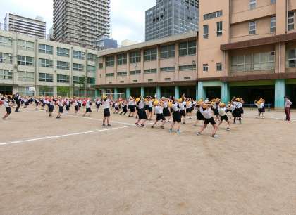 ◯運動会の最初の演目「難波元町体操」を全校児童で練習しました。