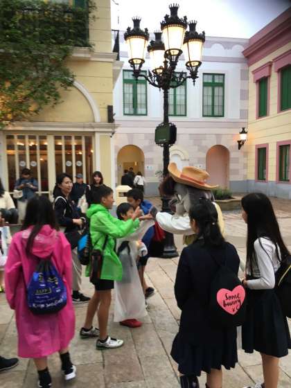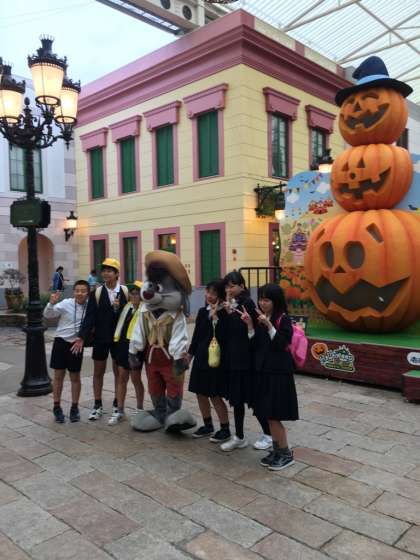 志摩スペイン村のキャラクターと一緒に写真を撮りました。