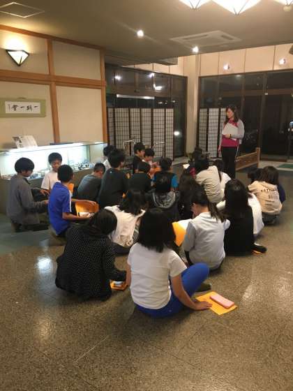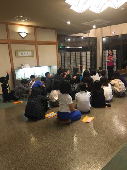 今日の活動を振り返りました。この後、各部屋に戻り就寝です。では、また明日、活動をお楽しみください。