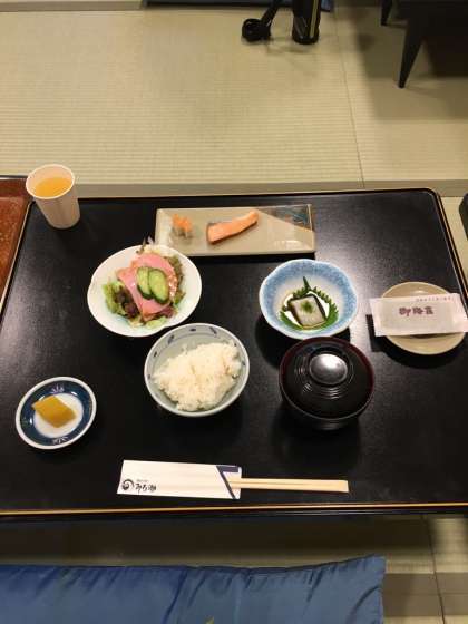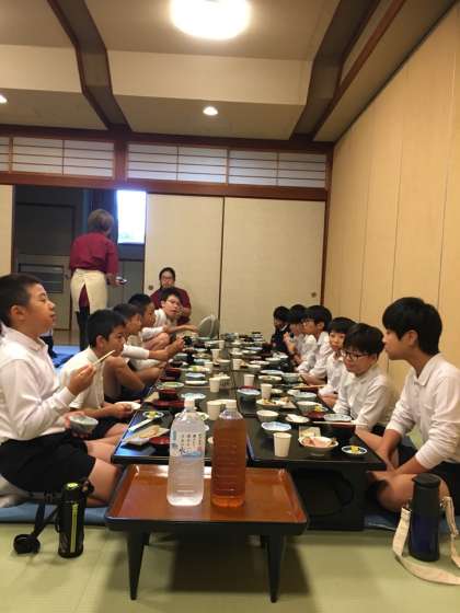 昨夜の夕食時に比べるとおとなしい感じが・・・。