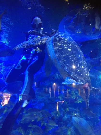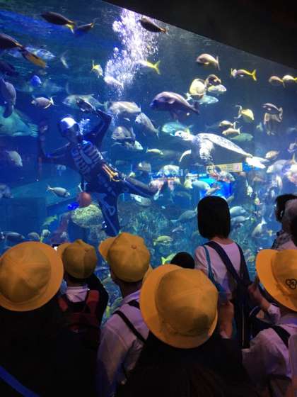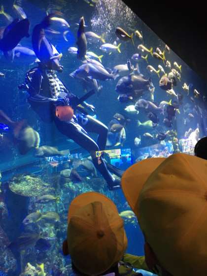 ダイバーによる餌やりは沢山の魚が寄ってきて圧巻
