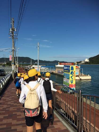 鳥羽水族館を出て、鳥羽駅へ向かっています。空は秋晴れ、心地良い爽やかな風が吹いています。